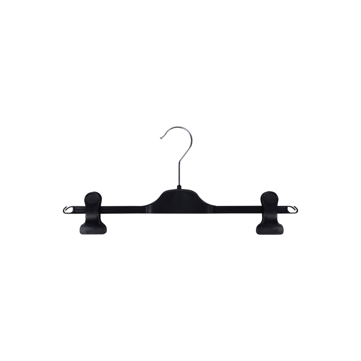 Kunststof knijphanger met verstelbare metalen knijpers. Geschikt voor rokken, broeken en shorts. Stevig, kledingvriendelijk en 28 cm breed.